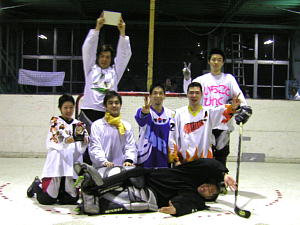 | 初戦から絶好調のバタフライスタイルはSS Ladiesに4−0で快勝し、宮内リーゼンツにも4−3と辛くも逃げ切り2連勝! こまざわ魂はSS Ladiesと1−1の引き分けと熱戦を繰り広げるもバタフライスタイルには4−1と快勝し、バタフライスタイルの連勝をストップ! ハープシールズは法政ゴマフアザラシズ、宮内リーゼンツに1失点しながらも順当に勝ち進むが負けたとはいえ両チームの成長の著しさを感じさせる! ここでなんとバタフライスタイル竹原選手が鉄壁の守りをみせ、強豪ハープシールズの攻撃をシャットアウトし1点を守って初めて土をつけ、優勝の行方は全く予想のつかない展開となった! また成長著しい宮内リーゼンツは3−1でSS Ladiesを破り、法政ゴマフアザラシズもなんと一丸ホッケーで2−0でこまざわ魂をやぶって初勝利をあげ沸き立つリンク! この勢いに乗るのはどちらなのか!? 注目を集めるアイスホッケー学生チーム直接対決は何と1点を守もりきった法政ゴマフアザラシズが勝利! 優勝がかかった最終戦でハープシールズの相手はこまざわ魂! 白熱した一戦は3−2でハープシールズ優勢でシュートアウトにもつれ込むとこの1点差を守りきって4−3でハープシールズが連覇を決めた! 最終結果は以下の通りとなった! □リーグ3 結果□ 優勝 ハープシールズ 2位 バタフライスタイル 3位 法政ゴマフアザラシズ 4位 こまざわ魂 5位 SS Ladies 6位 宮内リーゼンツ |
