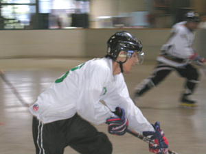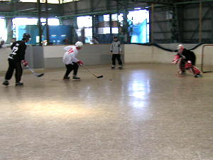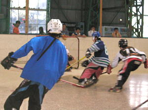 | 10月7日YSHLリーグ2が開幕! 初戦はどんだけ〜!?四つだけ対TeamYSHLの一戦! どんだけ〜!?四つだけはS40蒲公英系に数名が加わった合同チームのようです。 第1ピリオド、TeamYSHLは7番谷口(華)選手が幸先良く先制し、序盤をリードするもシュート本数も含めまったくの互角の戦い! 前半を2−0で折り返しTeamYSHLが優勢に見えたが、第3ピリオド、どんだけ〜!?四つだけは、5番飯塚選手→1番稲垣選手の連携で華麗な肩口へのゴールを決めると息を吹き返し、ディフェンスのミスをついて7番進藤選手の連続ゴールで同点! さらにお互いに1点を返しガチンコ勝負となった! 両者ゴーリーのファインセーブもあり同点シュートアウトかと思われた試合終了間際決定的チャンスをスーパーセーブしたTeamYSHL畠選手であったがリバウンドを押し込まれ、終了11秒前でまさかの大逆転! 4−3でどんだけ〜!?四つだけが初白星を挙げた! 第2試合ベーハー対CRUSHERSの一戦は両者ともゴーリー不在で試合を開始するも、第1ピリオド途中からCRUSHERSゴーリーが到着。 このクラスではさすがにゴーリー不在では分がなかったか、ベーハーは終始シュートを止められず16−5でCRUSHERSが圧勝している! |
