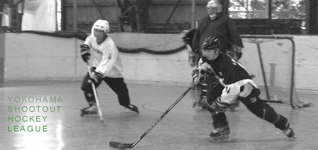 | 前回どんだけ〜!?四つだけをシュートアウトで破ってぎりぎりの勝利をつかんだTHURSDAYの相手は、対照的に試合残り数秒の失点に泣いたTeamYSHL! 序盤は互角の戦いながら2−1とTHURSDAYがリードして後半へ。 TeamYSHLは28番田中選手のゴールで同点とすると、ここまでGKともに良い守りをみせていたTHURSDAYのDFが崩れこのピリオドに手痛い4失点。 5−2で最終ピリオドを迎えるも、このままでは終わらないTHURSDAYは91番鈴木選手が3連続ゴールと猛追するもゲームセット!この日はGKの好セーブも光り逃げ切ったTeamYSHLが初勝利をあげた! 第2試合は高い攻撃力をみせるどんだけ〜!?四つだけがベーハーと対戦! 序盤から猛攻撃をみせショート本数12本と圧倒するもここはベーハーGK金沢選手が1点に押さえる好セーブ! しかし第3ピリオド半ばについに足が悲鳴をあげ、GK交代となった。 その後1点を返すもやはり圧倒的攻撃力を見せるどんだけ〜!?四つだけが9−1で快勝した! |