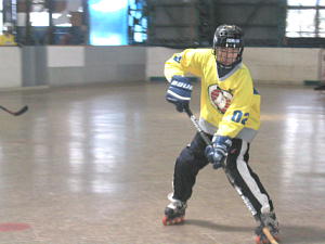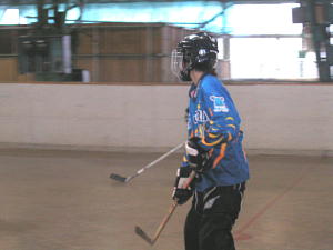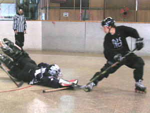 試合は第1ピリオド2:04、STINKERS7番岸選手のゴールで先制点をあげるとさらに7:23にも2番比良選手→7番岸選手→5番馬場選手のダブルアシストゴールで2−0とする!
